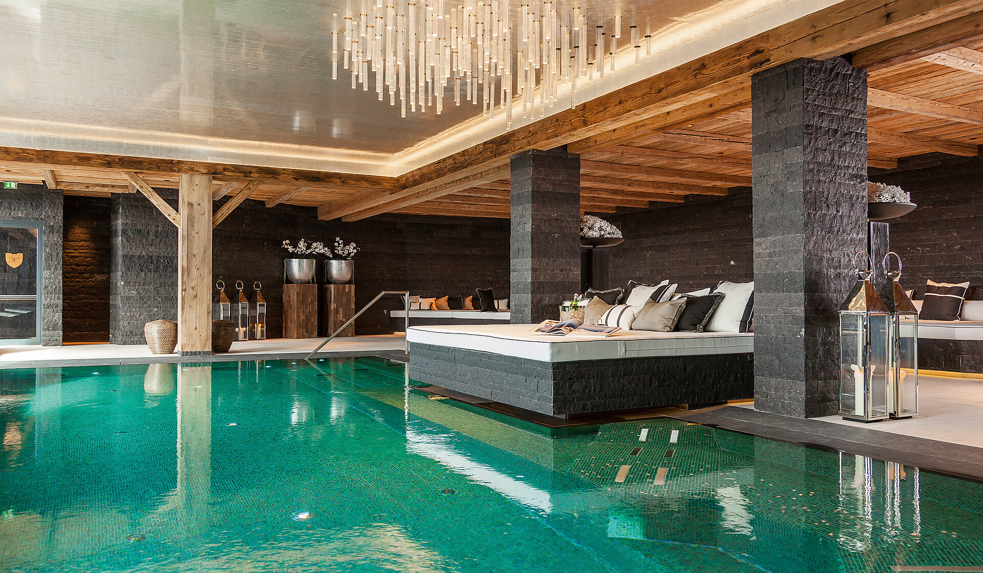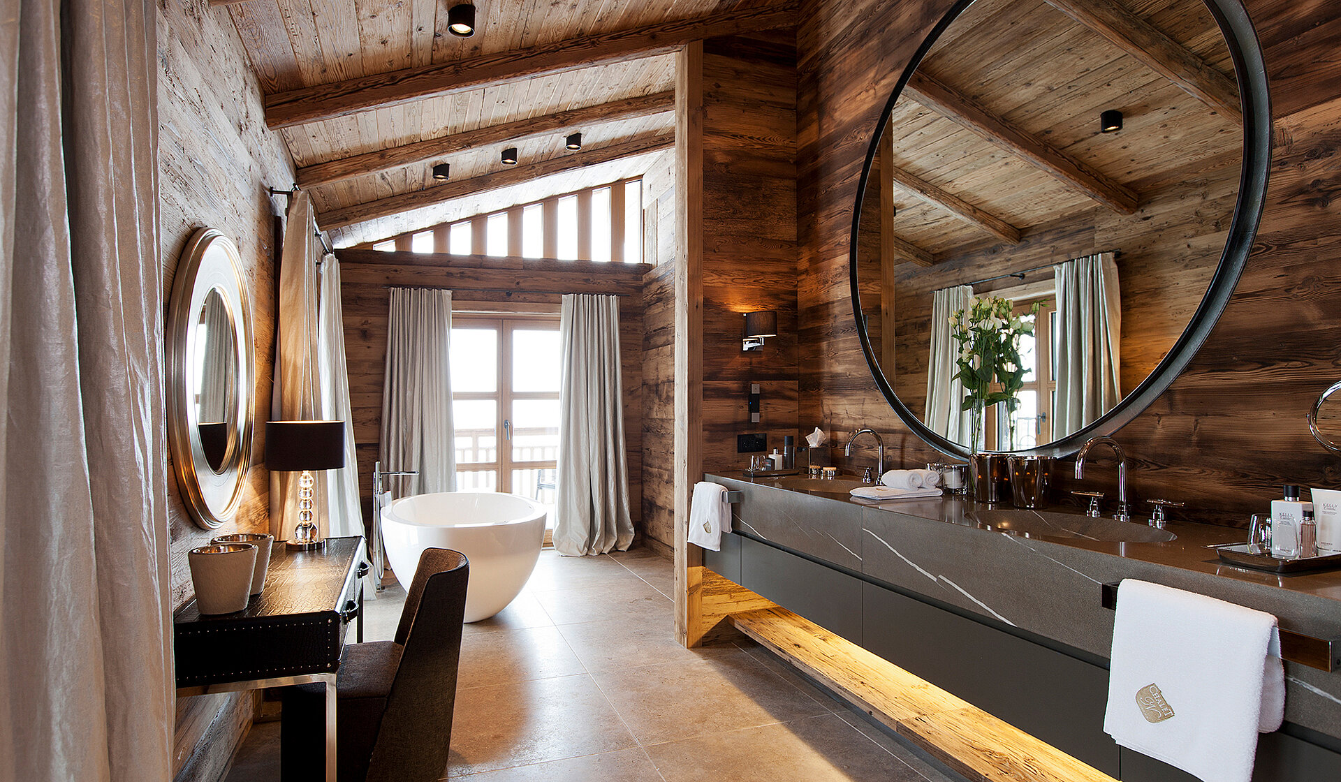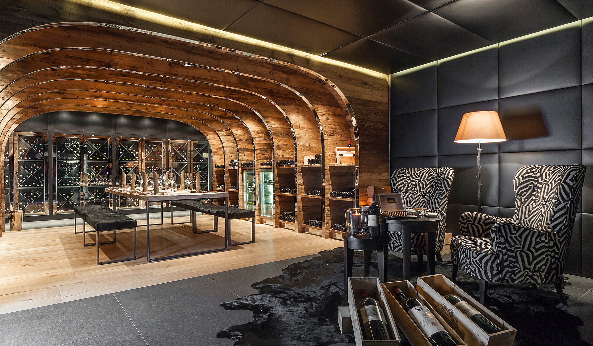 Chalet mit Chateau-Charakter. Die majestätische Größe des Chalets versetzt einen in ein modernes Chateau in den Bergen. Zu entdecken gibt es 7 Suiten, jede für sich einzigartig, einen Spabereich mit Innenpool und Sauna, eine Tafel wie in einem Schloss, einen Kinoraum und, den hochkarätigen Lagerweinen entsprechend, einen imposanten Weinkeller. Dieses traumhafte Luxusrefugium entstand in Zusammenarbeit mit Landau + Kindelbacher.
