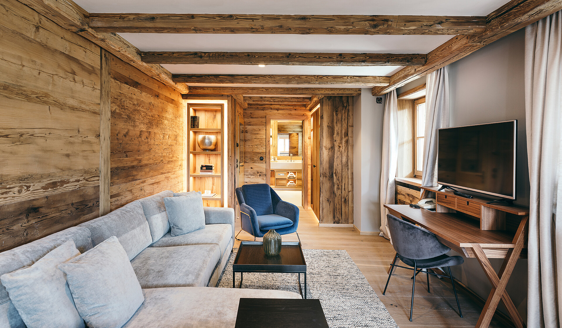 Dem Burgleben Moderne eingehaucht. Mit viel Fingerspitzengefühl ließen wir die ehemalige Burg aushöhlen und im Inneren umbauen – dadurch erhielten wir ein offeneres Ambiente. Die Burgatmosphäre haben wir mit Holzvertäfelungen und feinem Samt betont. Das gesamte Hotel statteten wir mit einer angenehmen Lichtgestaltung und modernem Interieur aus, um Wärme und Komfort in die insgesamt 11 Hotelzimmer dieses historischen Gebäudes zu bringen.