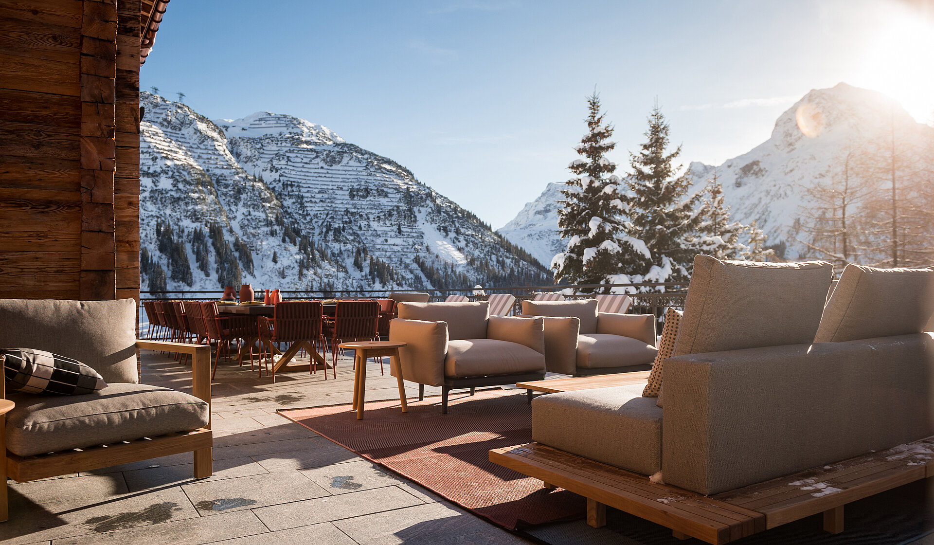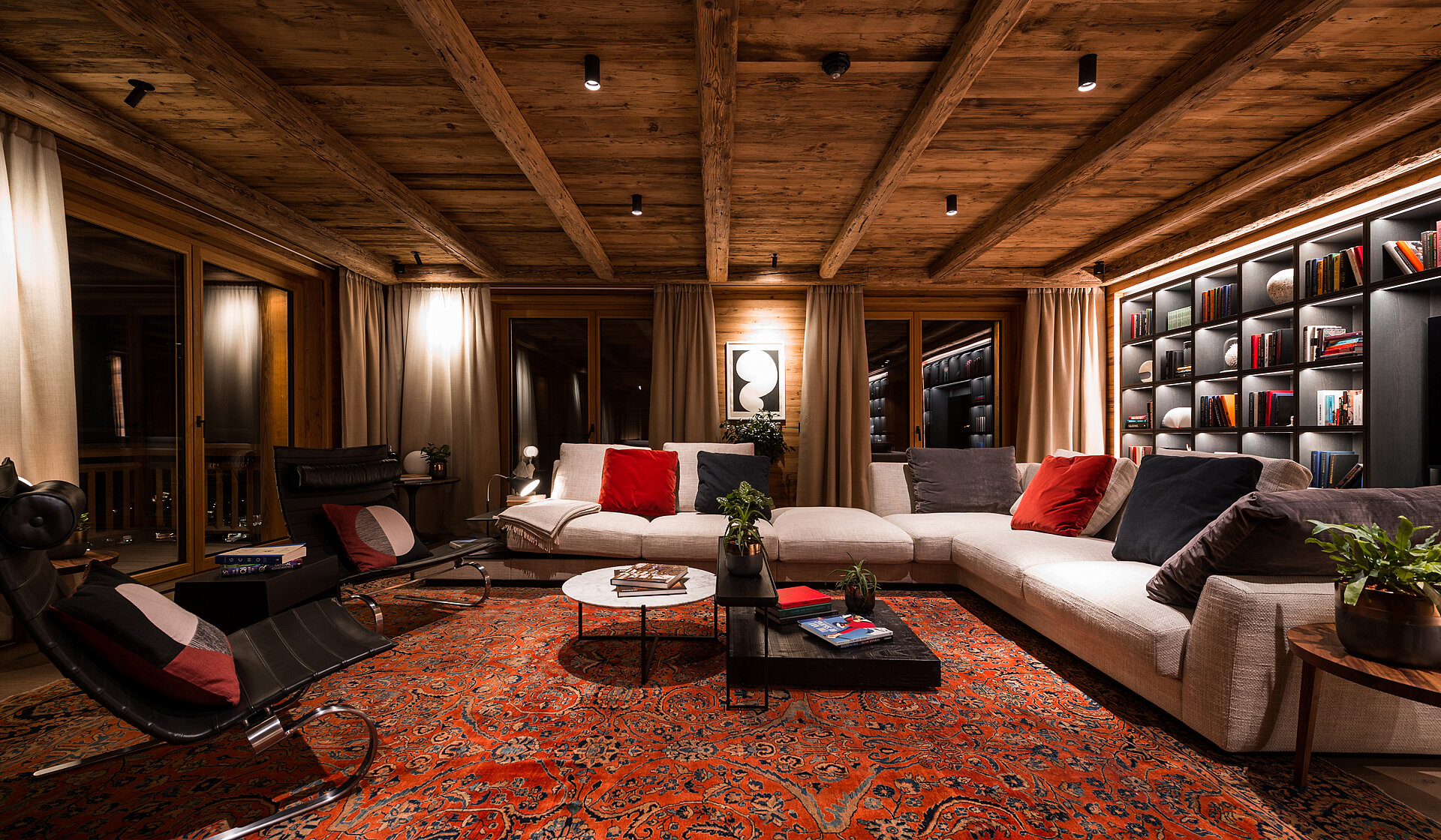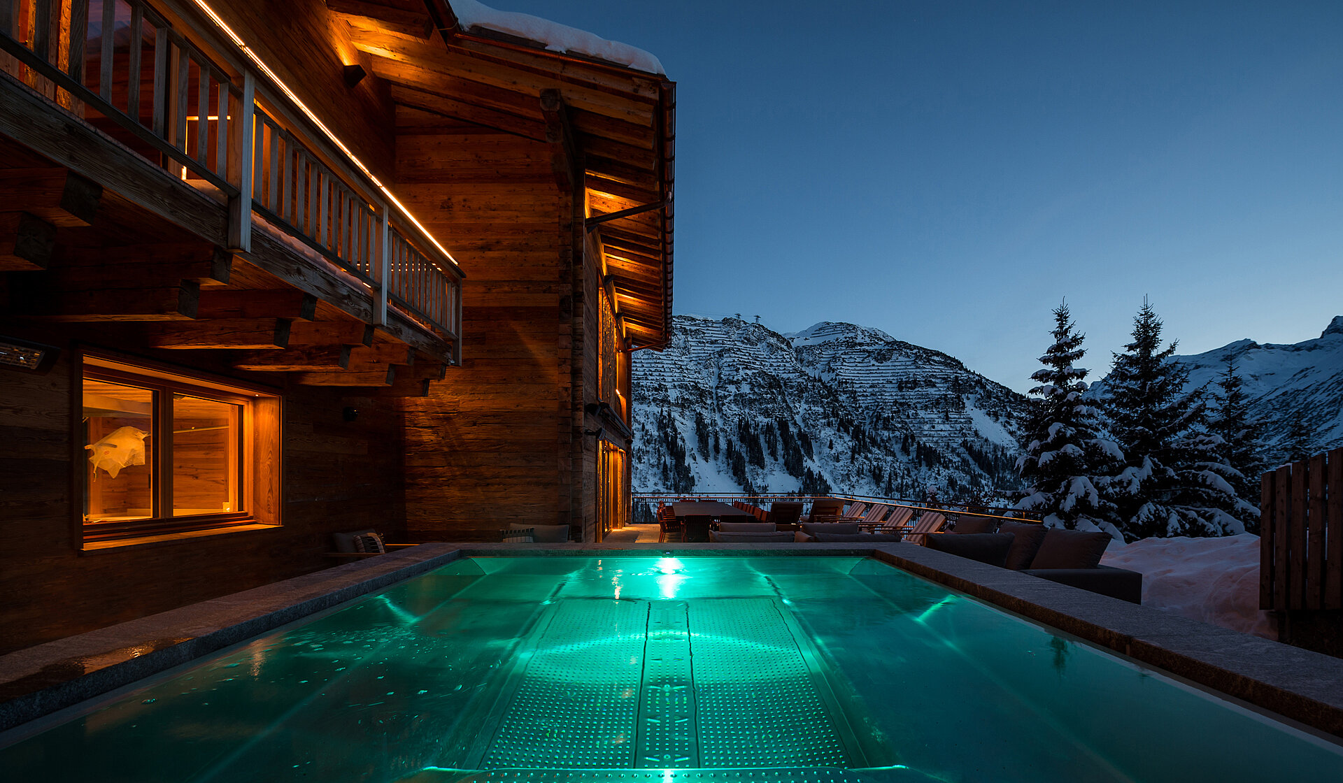Urbaner Komfort, alpiner Luxus und reichlich Privatsphäre. Der Wunsch des Bauherrn: einen Verwöhnort in den Bergen zu schaffen. Für den exponierten Standort in Lech haben wir zwei luxuriöse Chalets in alpiner Bauweise mit viel urbanem Komfort kreiert: mit Kinoraum und Kaffeehausambiente, Bar und Bibliothek, Panoramaterrasse und Wellnessbereich mit Indoor- und Outdoorpool. Ein exklusives Hideaway mit angenehmer Privatatmosphäre.